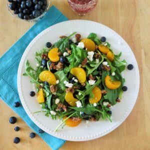 Lechugas mixtas, mandarina, arándanos, fresas, zarzamoras, queso ricotta, vinagreta de ...