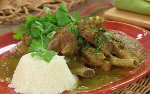 Costilla de puerco, sazonada con cebolla, Ajo tomate verde, chile serrano...